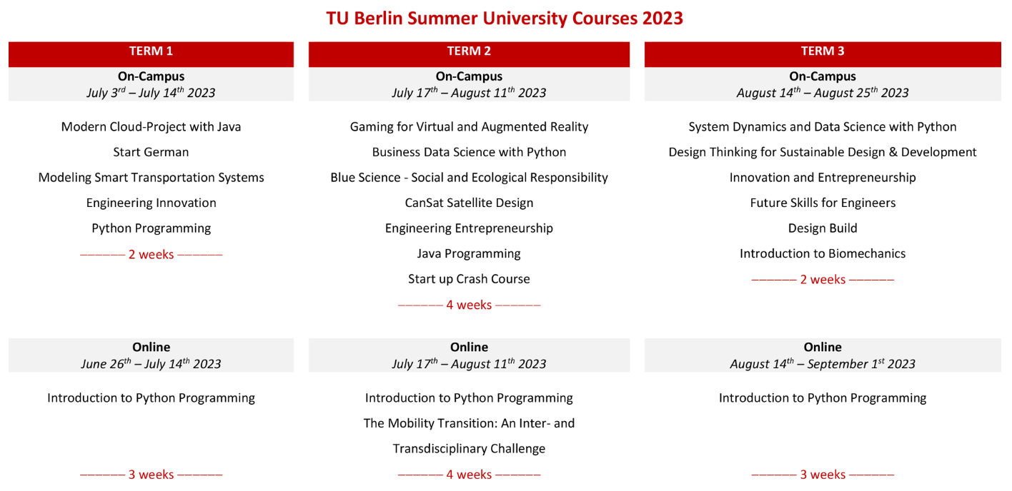 具体课程信息请见:https://www.tu.berlin/international/summer-school/summer-school