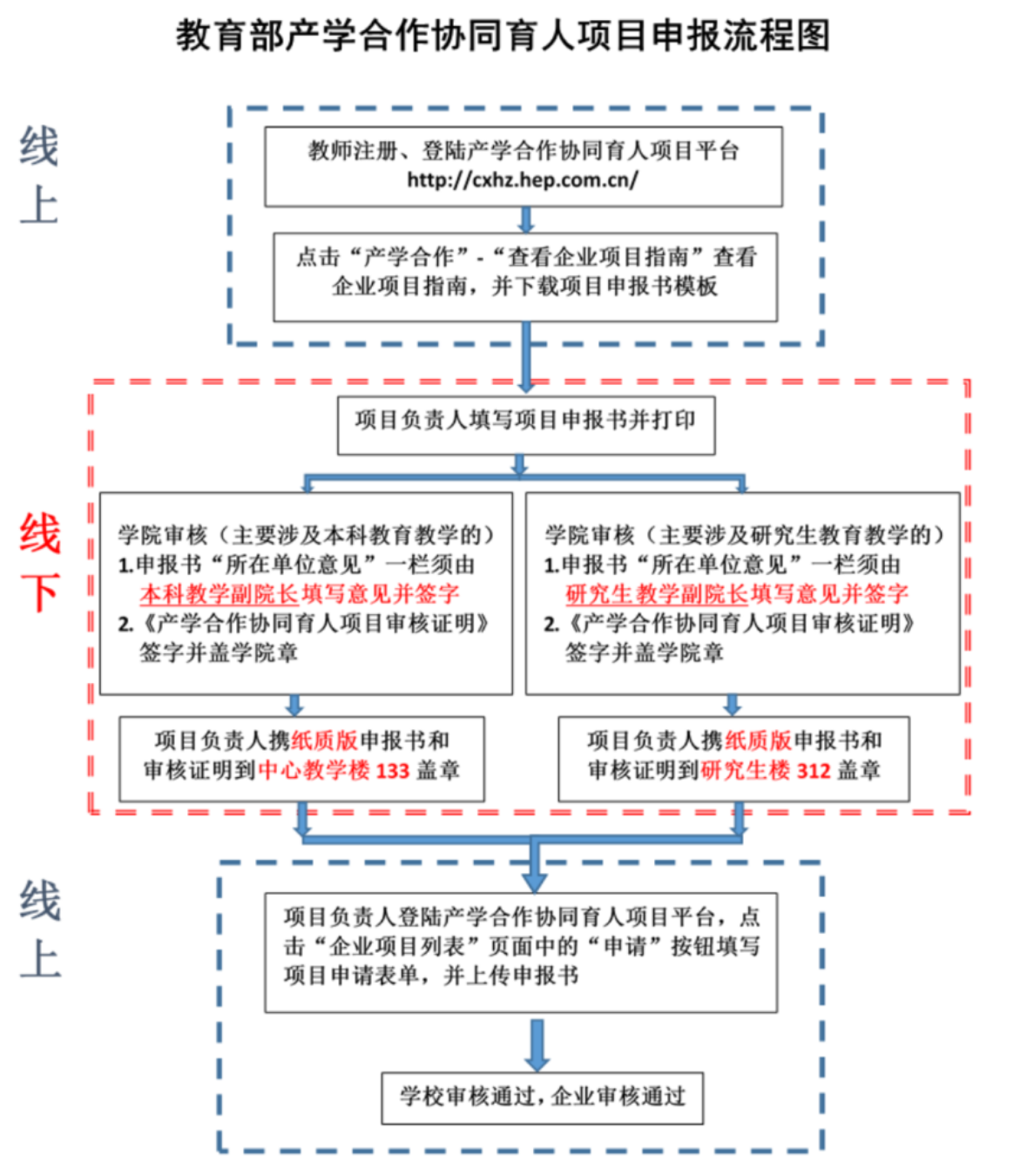 (1)项目内容主要涉及本科生教育教学的,申报书“所在单位意见”一栏须先由学院本科教学副院长填写意见并签字,同时在《产学合作协同育人项目审核证明》(附件1)上签字并盖学院章,一并交至教务部实践教学室(中关村校区中教133/良乡校区文科机关楼427),盖章后方可上传。