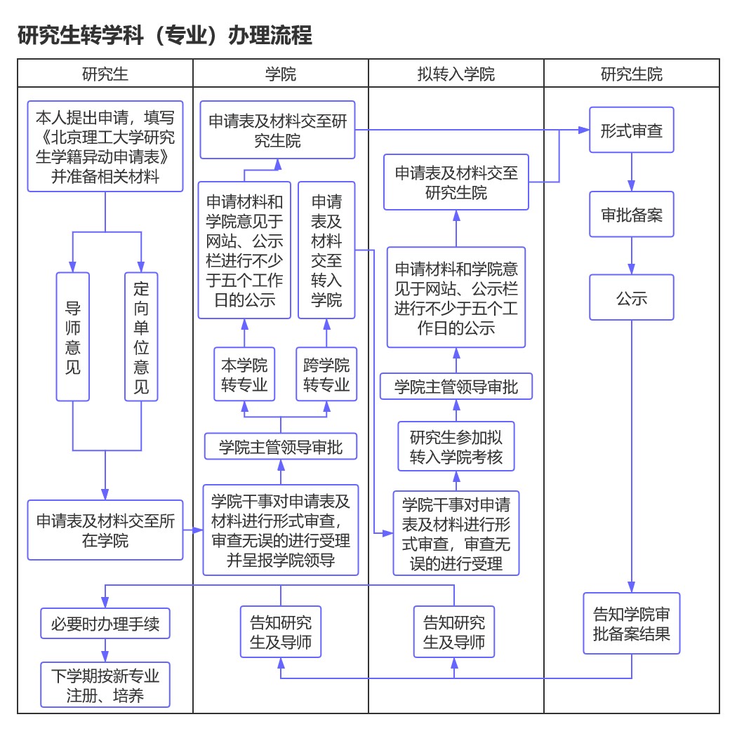 4、办理时间:必威西汉姆联每年春季学期校历第13-14周、秋季学期校历第16-17周集中受理研究生转学科(专业)申请,其余时间不予受理办理。
