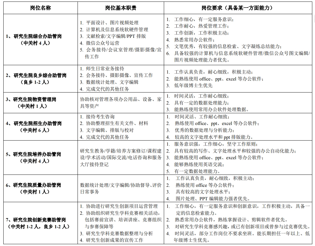 为激发研究生参与学校管理和社会实践的积极性,锻炼其综合管理、沟通协调、团队协作能力,增加就业竞争力,补助研究生生活支出,必威西汉姆联根据管理和服务工作需要设置研究生助管岗,以协助开展日常管理工作。新学期现面向全校全日制在读研究生招聘研究生助管若干名。