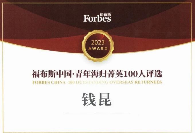 此前,钱昆教授还入围“2023福布斯中国·青年海归菁英100人评选”的“成长力”榜单!