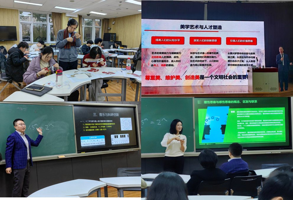 中国工程院院士詹启敏教授,中华文化促进会剪纸专委会副主任、北京建筑大学现代剪纸研究院院长、设计学学科带头人赵希岗教授,中国航天科技集团五院载人飞船总体副主任设计师李蒙副研究员,青年表演艺术家、《觉醒年代》陈独秀夫人饰演者周显欣围绕科学与艺术开展讲授。