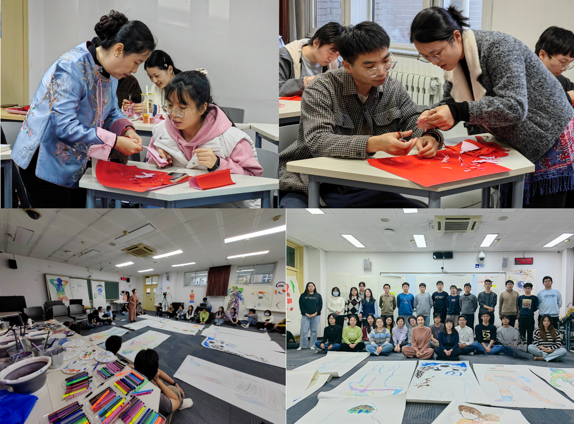 中华文化促进会剪纸专委会副主任赵希岗教授,国家级非物质文化遗产传承人郑蝴蝶,北京市东城区民协副主席刘晓迪,艺术疗愈工作者周小园带动学生开展艺术体验和新剪纸创作。