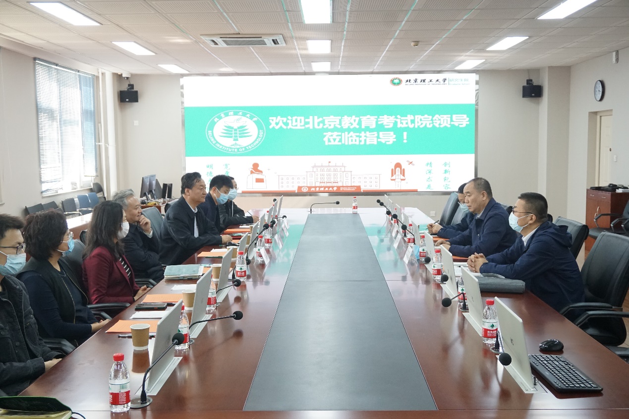 魏一鸣对李石柱一行来校调研考察表示热烈欢迎,对北京教育考试院长期以来给予学校发展建设和研究生招生工作的关心与支持表示感谢。他讲到,2022年研究生招生考试又一次在疫情防控常态化背景下进行,面临诸多风险挑战,学校始终高度重视研究生招生工作,在北京教育考试院的大力支持下,硕士研究生初试命题、试题印制与运送、组考、阅卷和复试等工作已顺利完成;博士研究生招生以“申请-考核”制方式正在进行之中,主要分为资格审查环节和远程面试环节。