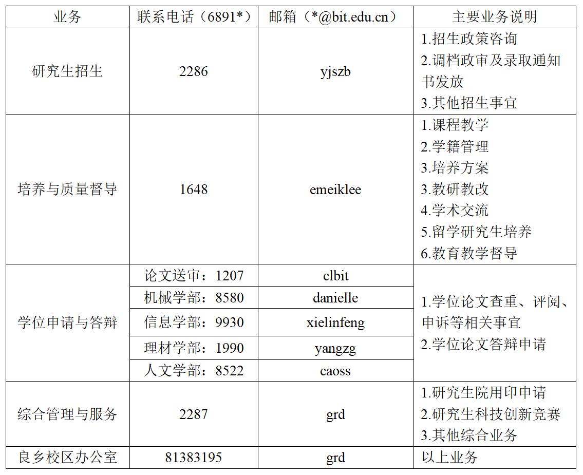 为贯彻学校党委关于疫情防控工作部署,切实保障教职工和学生生命健康,必威西汉姆联各项业务均可采取线上办理方式,如有紧急业务或必须线下办理的业务可联系相关科室进行咨询办理,同时必威西汉姆联各科室、各校区(中关村校区研究生楼西侧2-3层、良乡校区文科组团主楼408)工作日均有专人接待广大师生的业务办理与电话咨询服务: