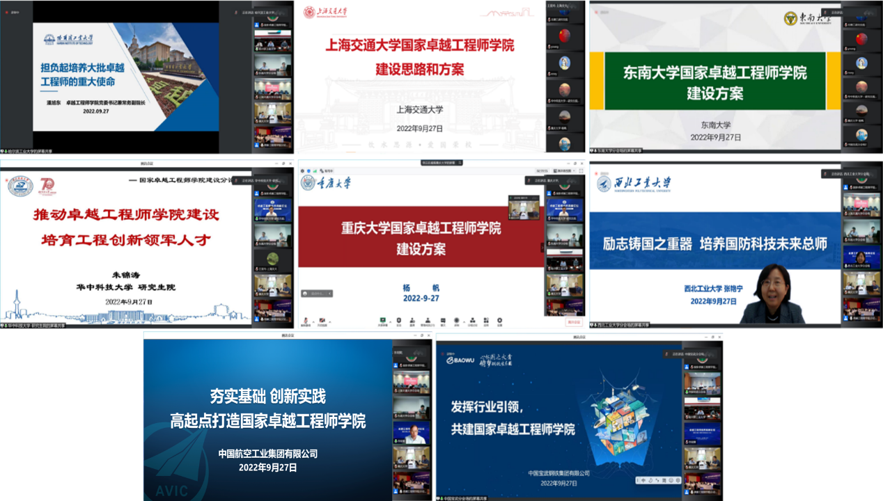 大会交流环节,哈尔滨工业大学、上海交通大学、东南大学、华中科技大学、重庆大学、西北工业大学等6所高校,中国航天科工集团有限公司、中国航空工业集团有限公司、中国船舶集团有限公司、中国兵器工业集团有限公司、中国电子科技集团有限公司、中国石油天然气集团有限公司、中国宝武钢铁集团有限公司、中国信息通信科技集团有限公司等8家企业进行了主题发言,分别结合各单位实际情况,分享了卓越工程师培养经验,并提出了对国家卓越工程师学院建设的思路与建议。