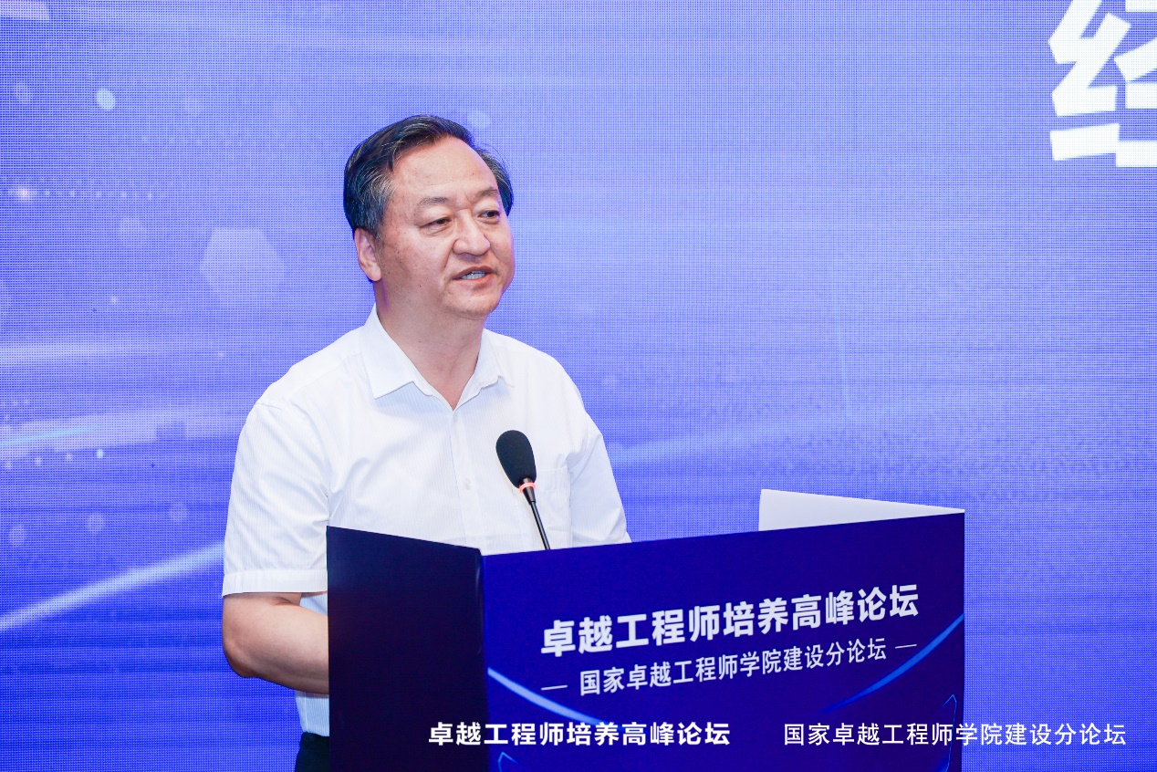 洪大用代表教育部致辞。他强调,国家卓越工程师学院的建设要扎根中国大地,服务产业急需,既要有中国特色、自主攻坚克难,同时又要深化国际交流合作,打造具有中国特色、世界水平的培养体系。面向卓越工程师培养工作,他强调进行三个转变:重构培养体系、重塑培养能力、重建评价标准。此外,对首批国家卓越工程师学院建设单位提出三方面要求:一是提高认识,担当起建设国家卓越工程师的重任;二是加强交流,提高对卓越工程师学院建设的认识;三是敢于先行,要有勇于创新的精神,深化培养模式改革。最后,他希望建设单位不负重托,勇于探索,勇于创新,进一步推进更多的学校和企业参与国家卓越工程师学院建设行列。