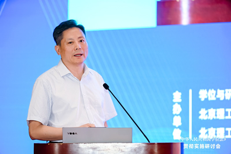 西北工业大学原党委书记张炜以《依法推进专业学位研究生教育高质量发展》为题作大会报告。专业学位发展是学位与研究生教育改革发展的关键环节,是高水平高层次人才培养体系的重要组成。《学位法》聚焦专业学位人才培养的现实瓶颈问题,在坚持分类培养、规范培养定位、加强产教融合、健全评价体系等方面提供了法律现实依据和改革制度空间。