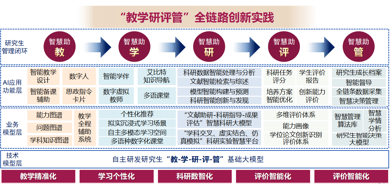 未来,学校将继续深化研究生教育综合改革,推进AI技术与教育教学深度融合,努力加快AI技术的教育教学应用场景创新,以“AI+DREAM”行动赋能研究生教育高质量发展。