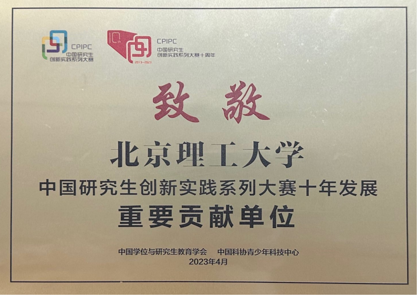 “中国研究生创新实践系列大赛”是由教育部学位管理与研究生教育司指导,中国学位与研究生教育学会和中国科协青少年科技中心共同主办,是目前我国唯一被政府认可和指导的专门面向研究生群体的全国性赛事。十年来,我校积极响应大赛号召,精心培育参赛项目,组织研究生积极参赛,在创新实践大赛中屡获佳绩,位居全国前列,学校累计获大赛优秀组织奖30项。大赛主办单位对BETWAY必威十年来为创新实践系列大赛作出的重要贡献表示肯定,并授予了“十年发展重要贡献单位”荣誉。