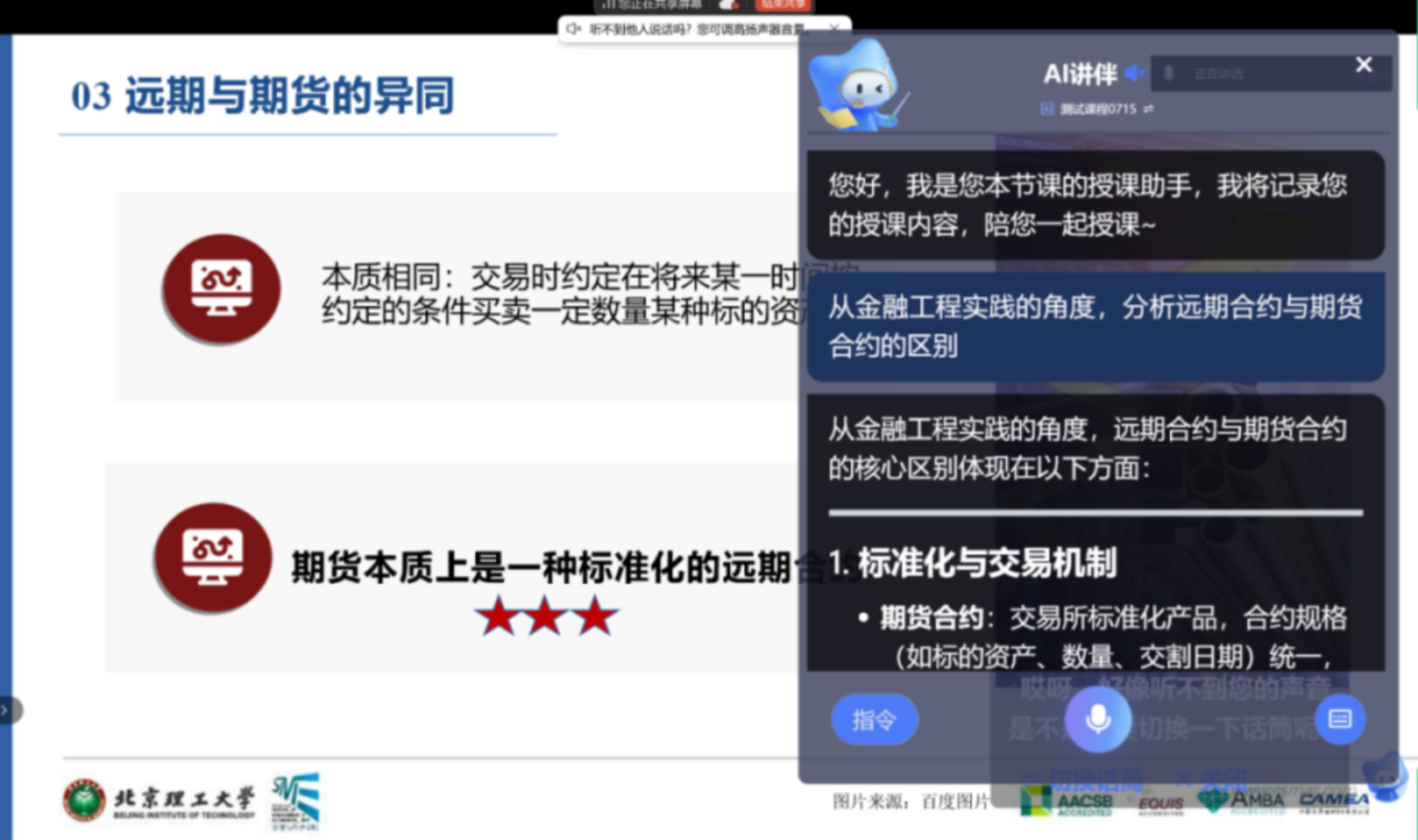 在教育数字化转型的浪潮中,学校以《金融工程》AI课程为试点,通过AI技术重构教学全流程,打造了“虚实结合、智能交互、全程伴学”的研究生智慧课堂新范式,为培养具有前沿思维的“新文科”复合型人才提供了北理工方案。