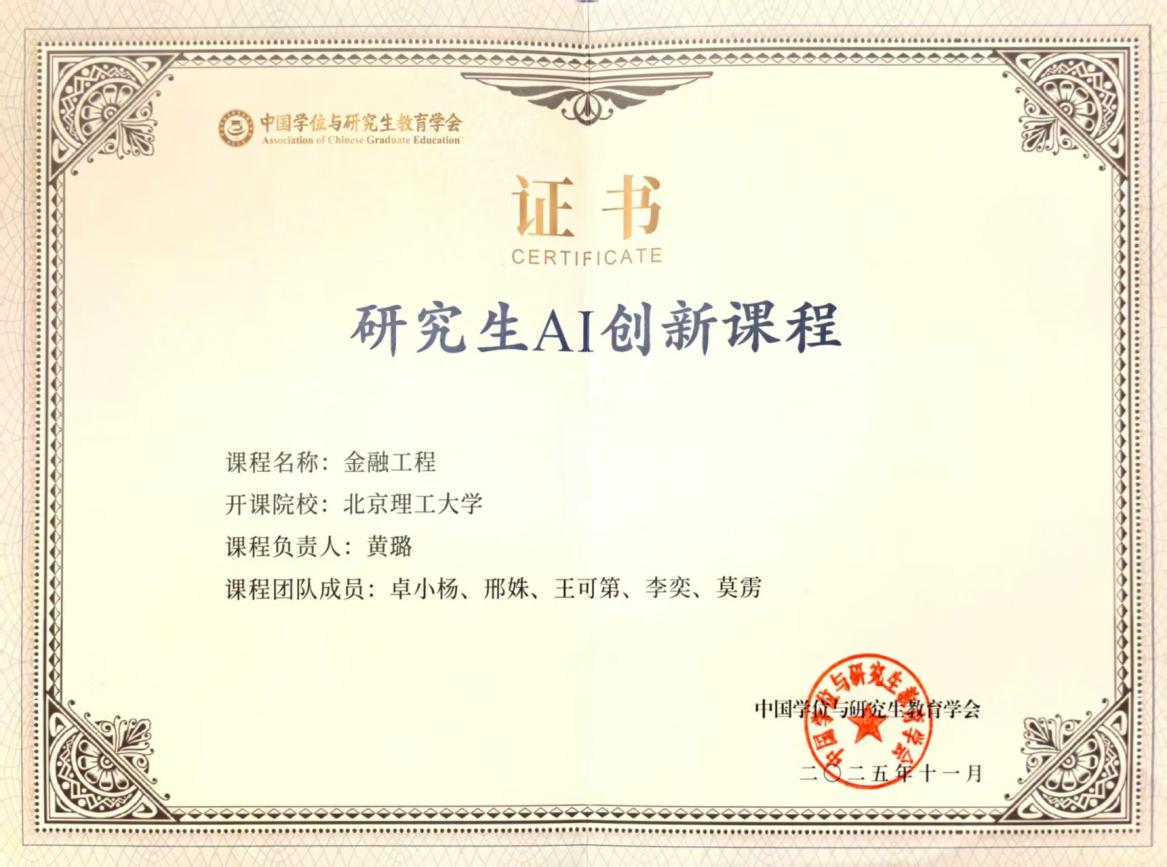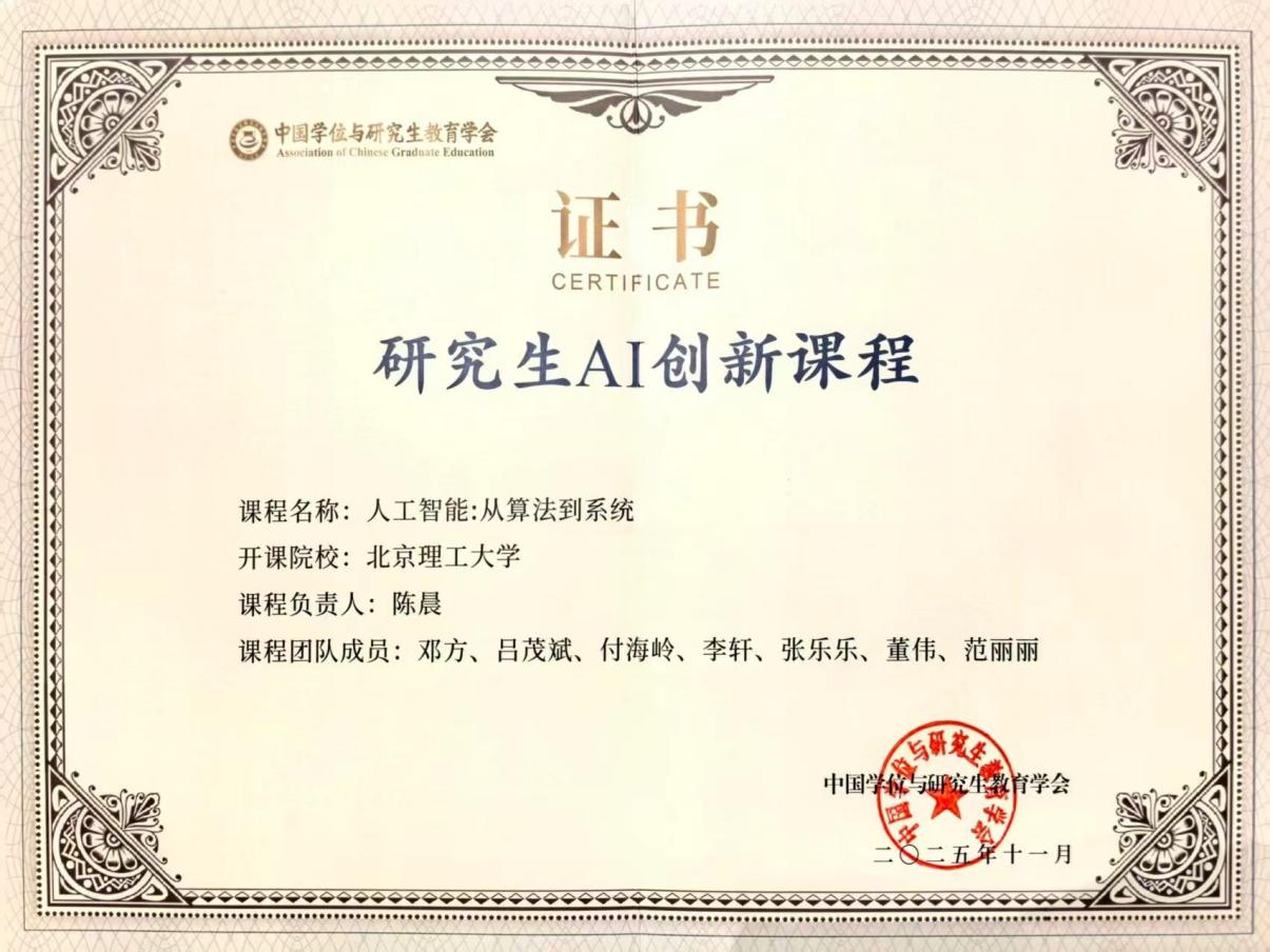 11月6日,2025研究生数智教育大会在杭州召开。北理工《人工智能:从算法到系统》与《金融工程》2门研究生课程入选中国学位与研究生教育学会“AI创新课程”。