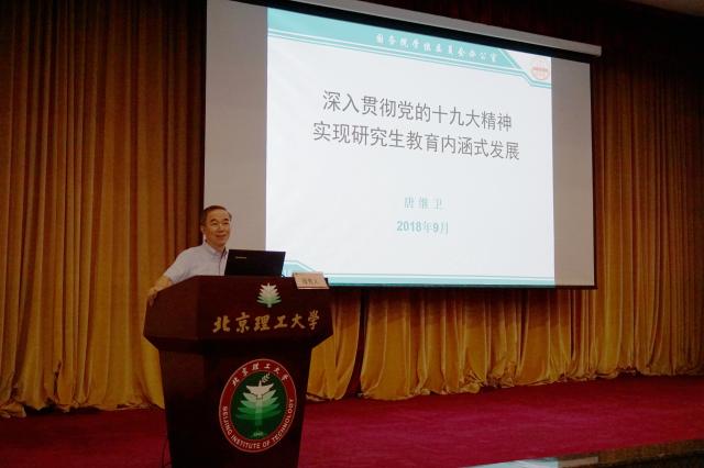 自动化学院院长夏元清教授做了“双一流建设背景下博士研究生培养方法探析”的专题报告,结合研究生培养过程中的问题,对导学关系、研究生培养方法等方面进行了分析探究,分享了宝贵的育人经验。