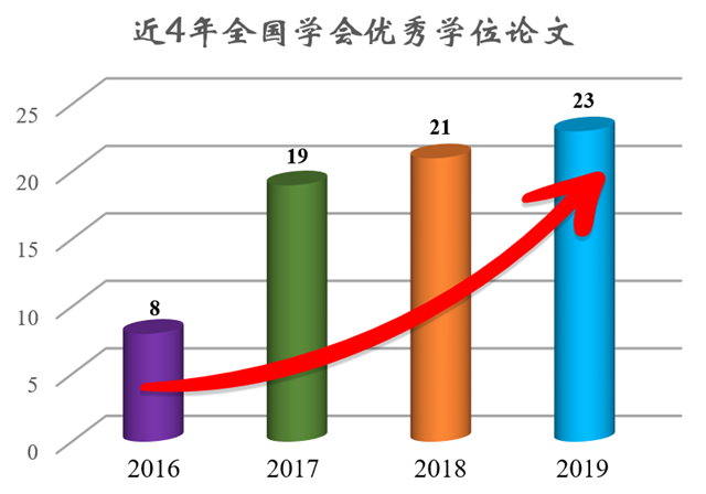2019年,我校参与了28个相关学会的优秀学位论文评选活动,取得了荣获23篇全国学会优秀学位论文的佳绩。 2016年以来在学校大力支持下,必威西汉姆联采取一系列举措,包括设立优秀学位论文育苗基金进行提前培育、制订学会优秀学位论文奖励办法进行激励、提前组织遴选和积极申报等,实现了学校全国学会优秀学位论文快速递增,从2016年8篇增加到今年23篇,四年总计获得了71篇全国学会优秀学位论文。