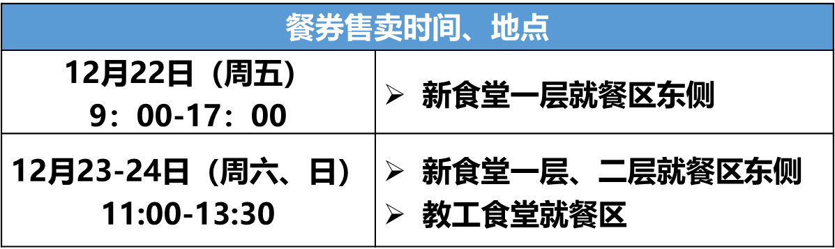 2.考试期间,学校在教工食堂和新食堂一层、二层为考生提供“考研午餐”,请需要用餐的考生提前购买餐券,并在指定的食堂窗口取餐。